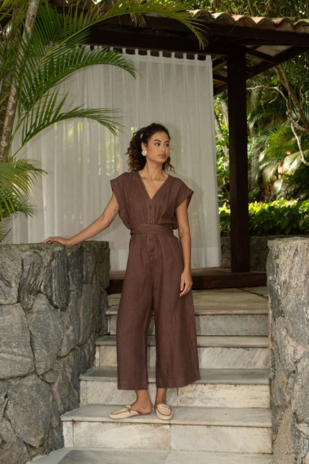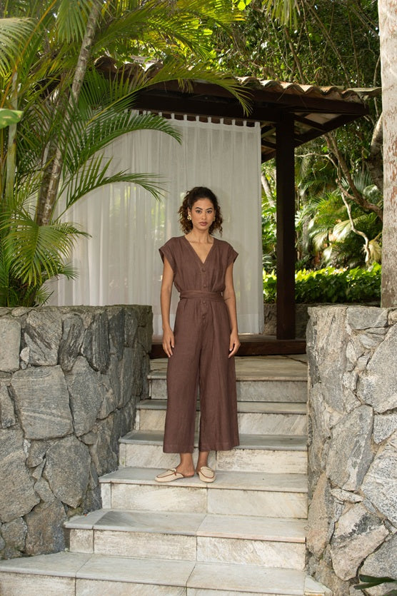 Nosso macacão Niggen foi desenvolvido para a mulher prática, que busca elegância sem abrir mão do conforto. Confeccionado em linho puro, ele é a escolha ideal para quem aprecia um estilo sofisticado e atemporal, trazendo uma essência moderna e minimalista, sendo versátil em qualquer ocasião. Além de seu cinto ajustável que permite acentuar a cintura com leveza e elegância, ele também conta com bolsos frontais, trazendo um mood utilitário à peça e valorizando seu design. Para um look casual chic, combine o Niggen com um par de tênis ou botas de cano curto e acessório discretos. Uma bolsa pequena e um mix de anéis ou pulseiras podem complementar o visual sem sobrecarregá-lo. Para um evento mais sofisticado, invista em saltos altos ou sandálias elegantes. Acrescente uma pashmina sobre os ombros para um toque extra de requinte. No dia a dia, use o macacão com sandálias de couro ou rasteirinhas e adicione um chapéu de palha. No ambiente corporativo, aposte no look combinado com um blazer leve, criando uma aparência profissional e sofisticada, ideal para um dress code mais moderno.