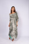 KAFTAN JAVA TONS DE CINZA E VERDE ÁGUA